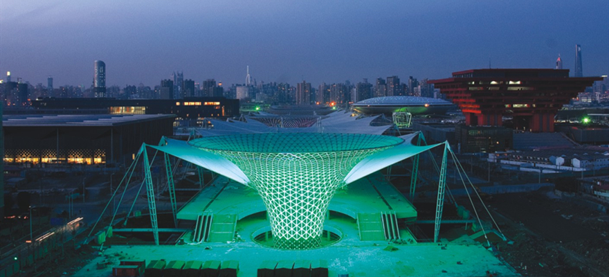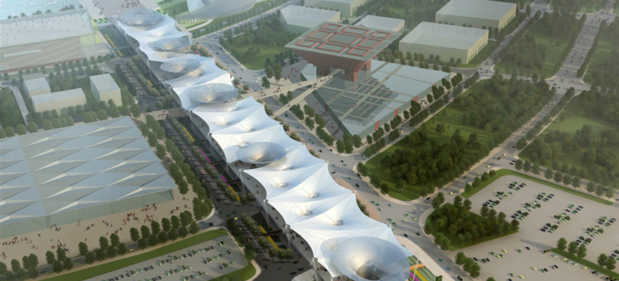該項(xiàng)目南北長1045m,東西寬地下99.5m-110.5m,地面以上寬80m,基地面積130669m2,總建筑面積227169 m2,其中地上建筑面積42877 m2,地下建筑面積184292 m2。本工程屋頂包括膜結(jié)構(gòu)屋頂和六個(gè)鋼結(jié)構(gòu)網(wǎng)殼“陽光谷”。網(wǎng)殼高度:41m,用鋼量:約300噸,網(wǎng)殼節(jié)點(diǎn)數(shù)量約10600個(gè),異形幕墻面積約3.5萬平方米。