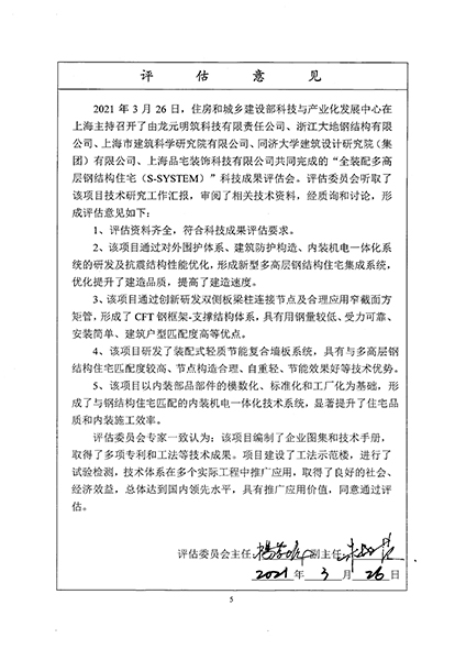 同時(shí),專家還提出了下一步研發(fā)指導(dǎo)意見(jiàn),建議針對(duì)建筑平立面、鋼框架剪力墻、施工速度、成本菜單化梳理等方面深度剖析,過(guò)程中做好示范總結(jié)工作,通過(guò)項(xiàng)目實(shí)踐,進(jìn)行技術(shù)驗(yàn)證及持續(xù)優(yōu)化。評(píng)估委員會(huì)專家一致認(rèn)為:龍?jiān)髦?/span>S-SYSTEM體系總體達(dá)到國(guó)內(nèi)領(lǐng)先水平,具有推廣應(yīng)用價(jià)值,同意通過(guò)評(píng)估。