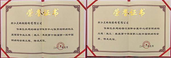 大地鋼構作為龍元集團整個建設板塊中的重要一環(huán),在2021年全國建筑鋼結構行業(yè)大會上斬獲“2020年度全國建筑鋼結構競爭力50強企業(yè)”、“2021年度建筑鋼結構行業(yè)科技創(chuàng)新優(yōu)秀企業(yè)”、“2020年度全國建筑鋼結構誠信企業(yè)”等多項榮譽稱號。大地鋼構承建的瑞金市體育中心體育場鋼結構及屋面層專業(yè)工程榮獲第十四屆第一批“中國鋼結構金獎”,晉江國際會展中心項目鋼結構工程榮獲第十四屆第二批“中國鋼結構金獎”。值得一提的是,這是鋼結構領域工程質量最高榮譽獎。多項鋼結構領域的殊榮肯定了龍元集團的專業(yè)水準,為后期承接更多鋼結構項目打下了堅實的基礎。