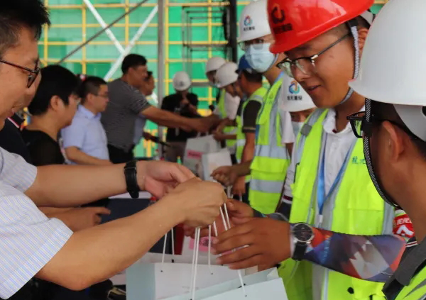 與會領(lǐng)導(dǎo)還為辛勤工作在一線的項目工人送上防暑慰問品,叮囑工人要增強自我防護意識,確保身心健康,要求項目部做好后勤保障工作,齊心協(xié)力,克服困難,持續(xù)推進項目建設(shè)。