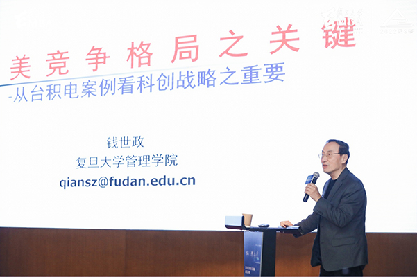 復(fù)旦大學(xué)管理學(xué)院教授錢(qián)世政圍繞“中美競(jìng)爭(zhēng)格局之關(guān)鍵——從臺(tái)積電案例看科創(chuàng)戰(zhàn)略之重要”的主題進(jìn)行了主旨演講。他表示在科技驅(qū)動(dòng)創(chuàng)造價(jià)值的時(shí)代,一個(gè)企業(yè)的價(jià)值取決于其所處生態(tài)的位置,芯片之爭(zhēng)的本質(zhì)是科技之爭(zhēng),國(guó)家發(fā)展戰(zhàn)略之爭(zhēng)。